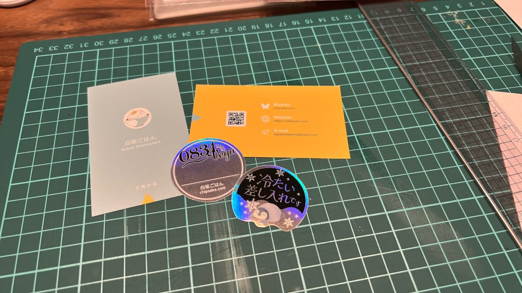 これだけでは寂しいので、おたクラブでオーロラシールを作成してみました。かわいい! 名刺も新調しました。